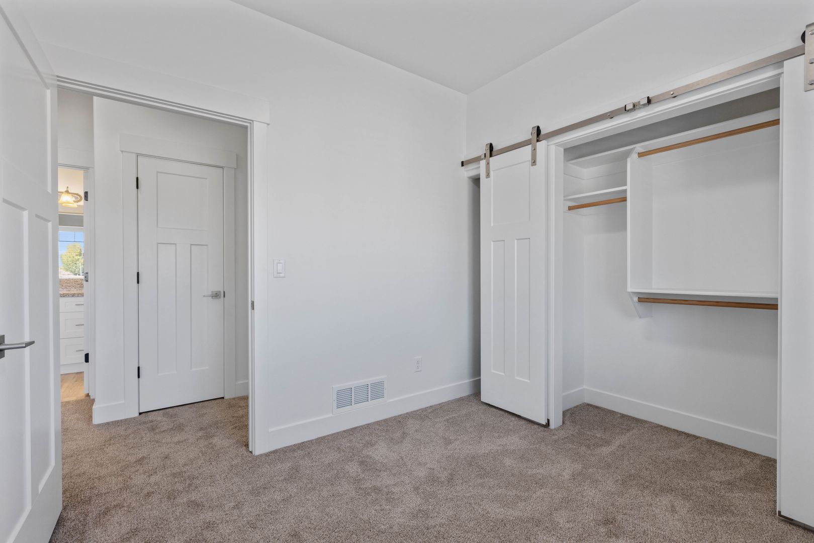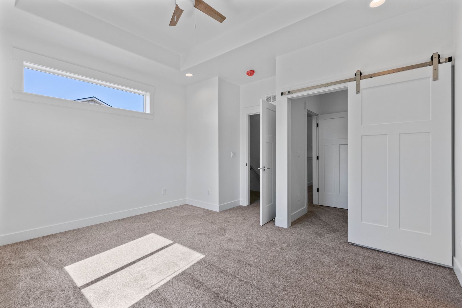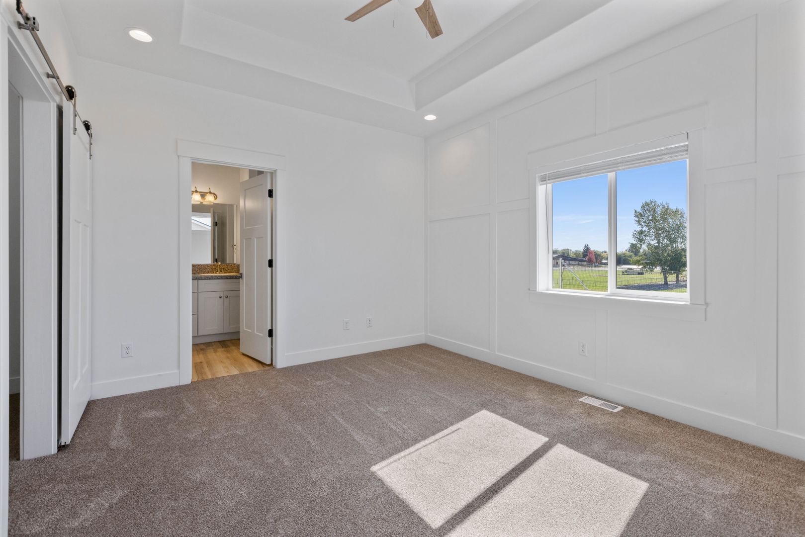 The upper level features 9’ ceilings and 3 bedrooms with extra finish details and ample storage throughout the home. The primary bedroom offers a tray ceiling, while the attached bathroom includes a double-sink vanity and a spacious walk-in closet.