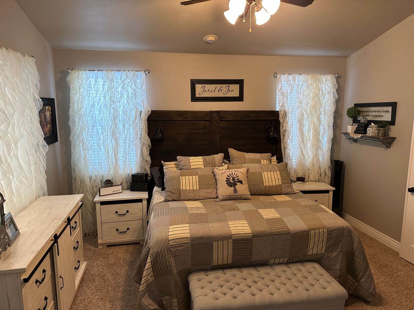 Welcome to your dream home in the heart of Sugar City, ID. This spacious 5-bedroom, 3.5-bathroom house has a generous 2579 square feet of living space, perfect for those who appreciate room to breathe. The home features a 3-stall garage, providing ample space for vehicles and storage. The fully landscaped yard, complete with a sprinkler system, offers a beautiful outdoor space for relaxation and entertainment. The yard is also fenced, adding an extra layer of privacy. The house is thoughtfully designed with 2 bedrooms, a family room, and a full bathroom downstairs. The upstairs has 3 bedrooms and 2 full bathrooms, providing a comfortable living arrangement. The main floor is the heart of the home with a kitchen, dining area, laundry room, and a large living room. The kitchen is equipped with brand new stainless steel appliances, and the entire house is freshly painted with newer carpet throughout. The house also comes with an A/C system, ensuring your comfort in all seasons. This home is a perfect blend of space, comfort, and modern amenities. Call us today to check this place out!! 208-782-7368