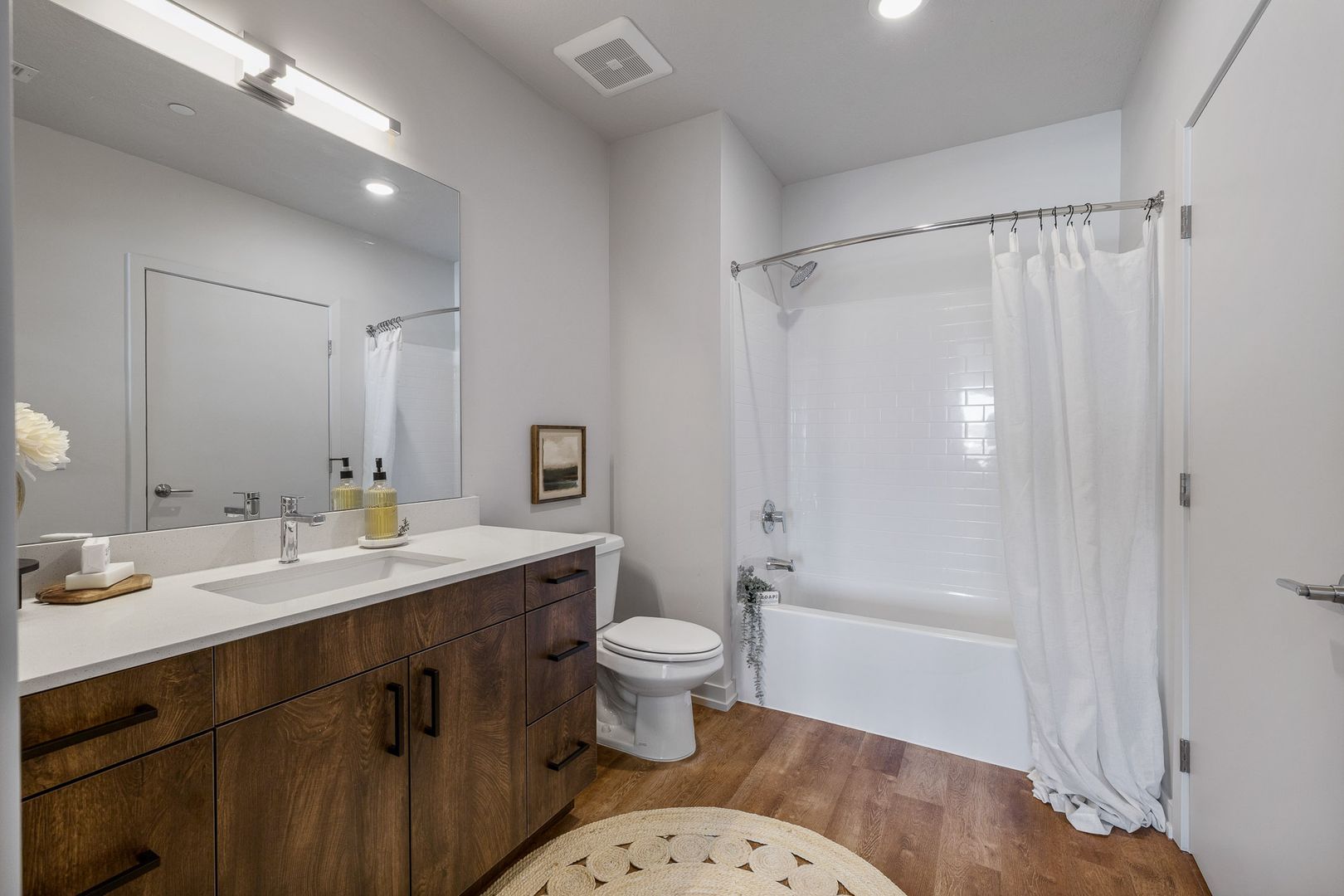 Our Clearwater layout is a beautifully designed one-bedroom, one-bath residence that’s perfect for those who value both style and simplicity. This pet-friendly home includes an in-unit washer and dryer, elegant vinyl plank flooring, modern tile showers, plush carpeted bedrooms, and sleek stainless steel appliances. A private balcony extends your living space, creating the ideal spot to unwind and enjoy the fresh air.