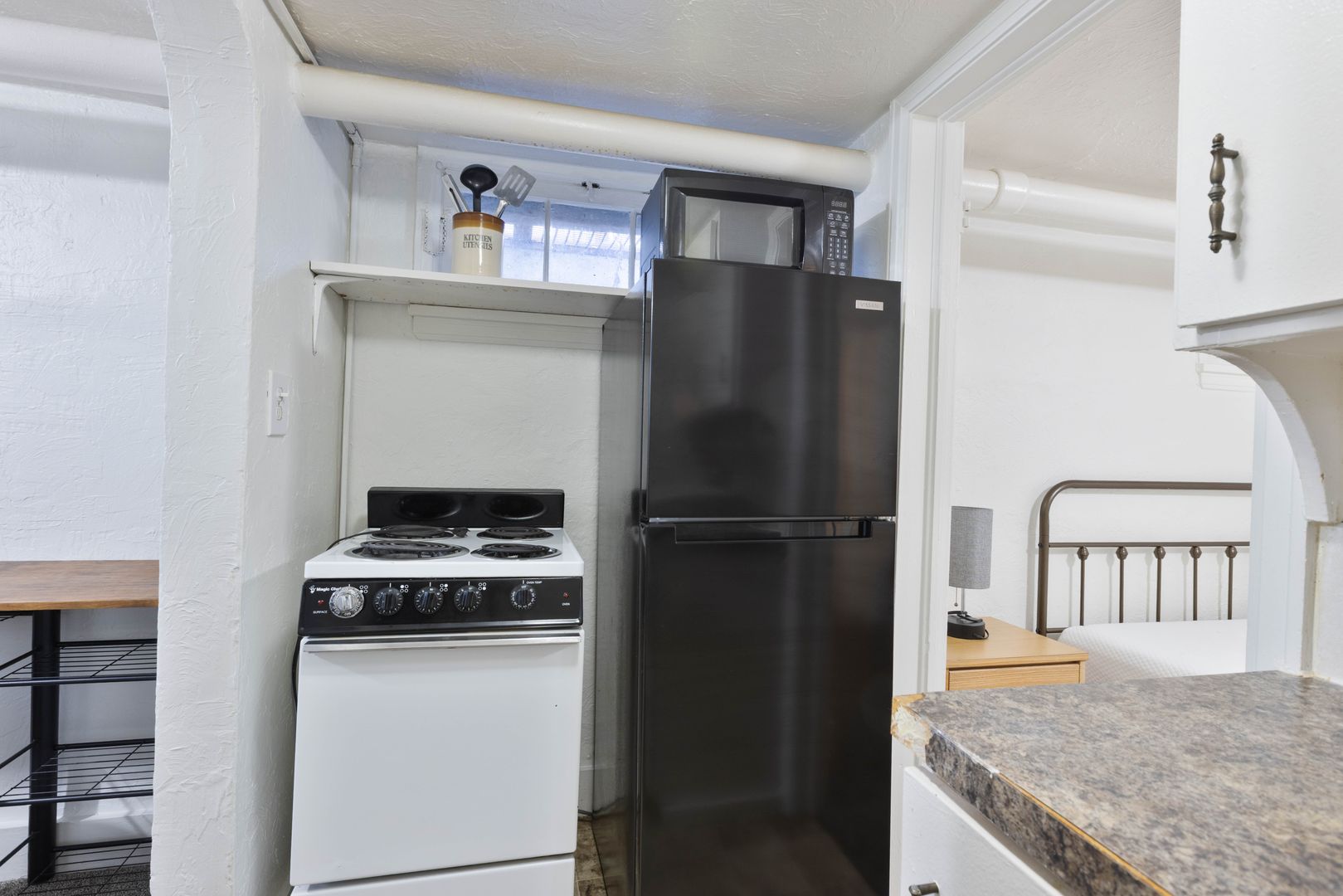 The apartment comes furnished and includes essential appliances such as a stove, oven, microwave, refrigerator, and freezer. Utilities are split, with the owner covering internet and the tenant responsible for City of Idaho Falls water, sewer, garbage, and electricity. Please note that there is no onsite laundry available.