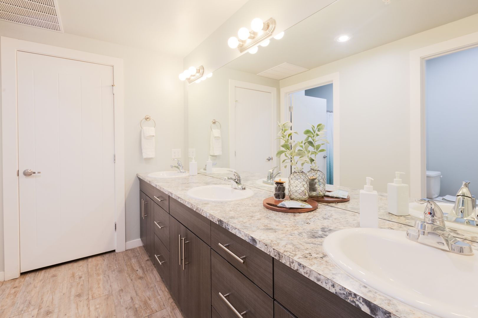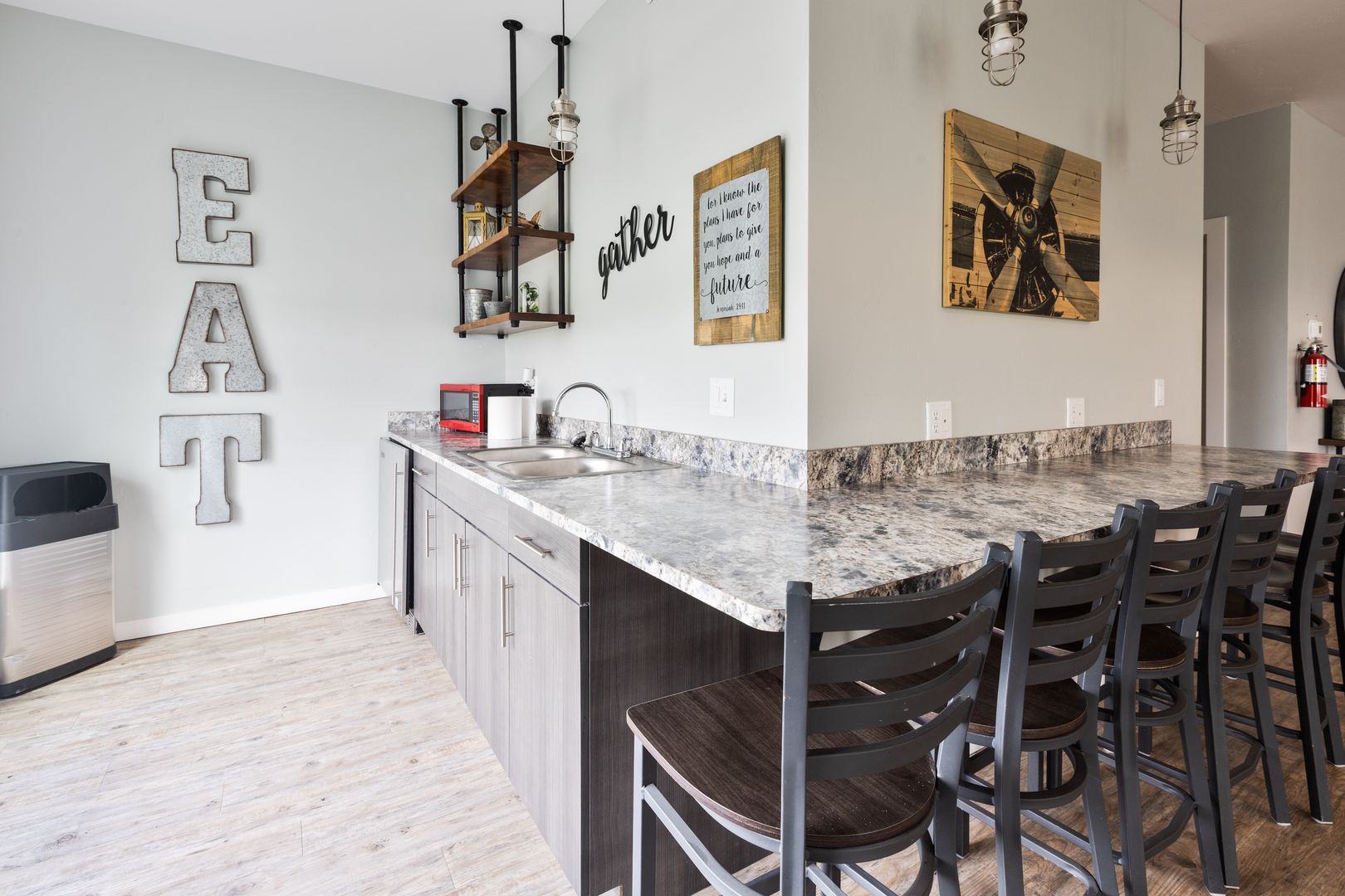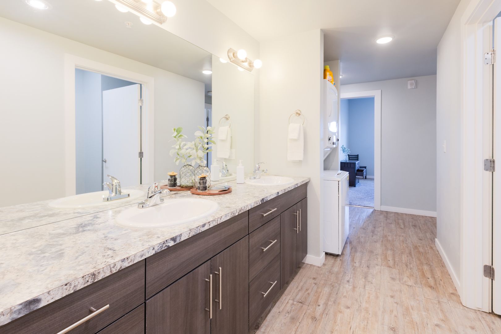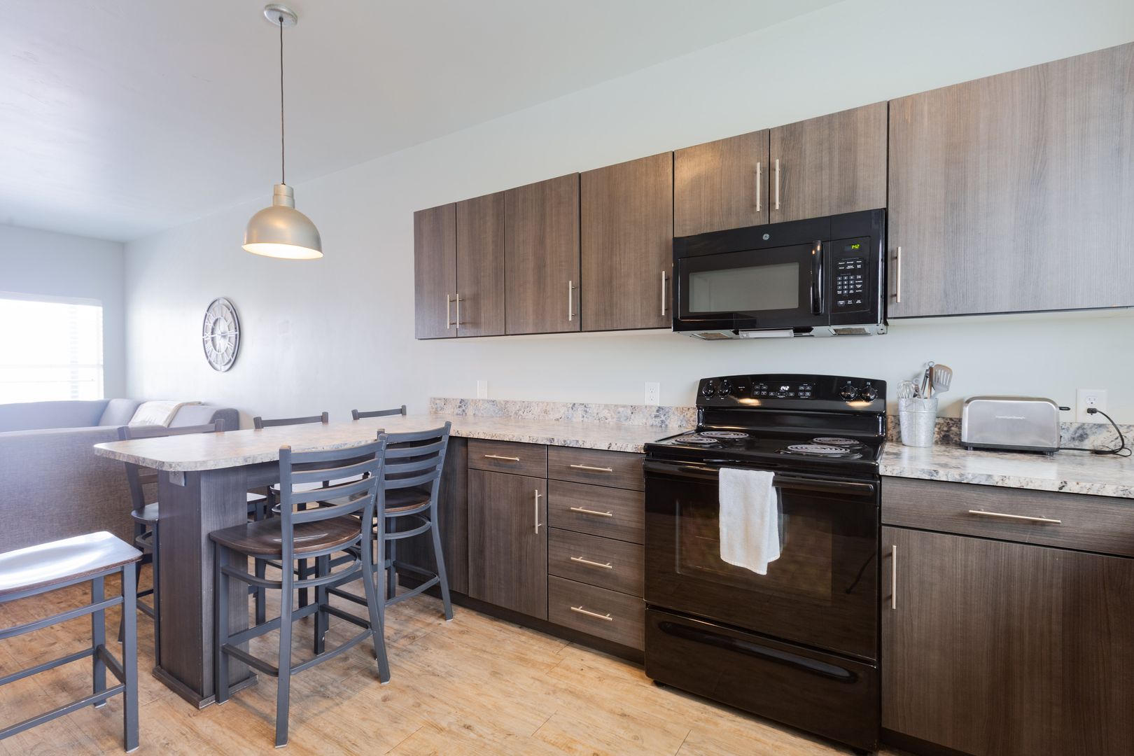 This private room comes furnished with a king bed. This apartment in Rexburg offers modern comfort and convenience, perfect for students or professionals seeking short- or mid-term housing. The bright living space features large windows, a comfortable layout, and a wall-mounted Smart TV, creating a welcoming spot to relax or gather. The fully equipped kitchen comes with a stove, oven, refrigerator, dishwasher, microwave, cookware, and plenty of storage, while the built-in breakfast bar seats six and works equally well for meals, study sessions, or as a convenient workspace.