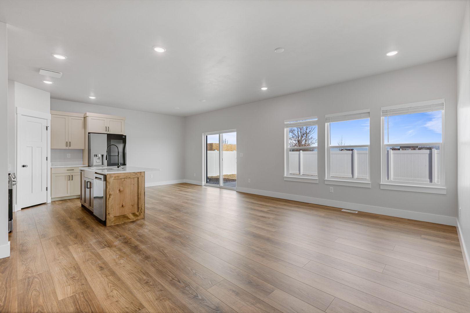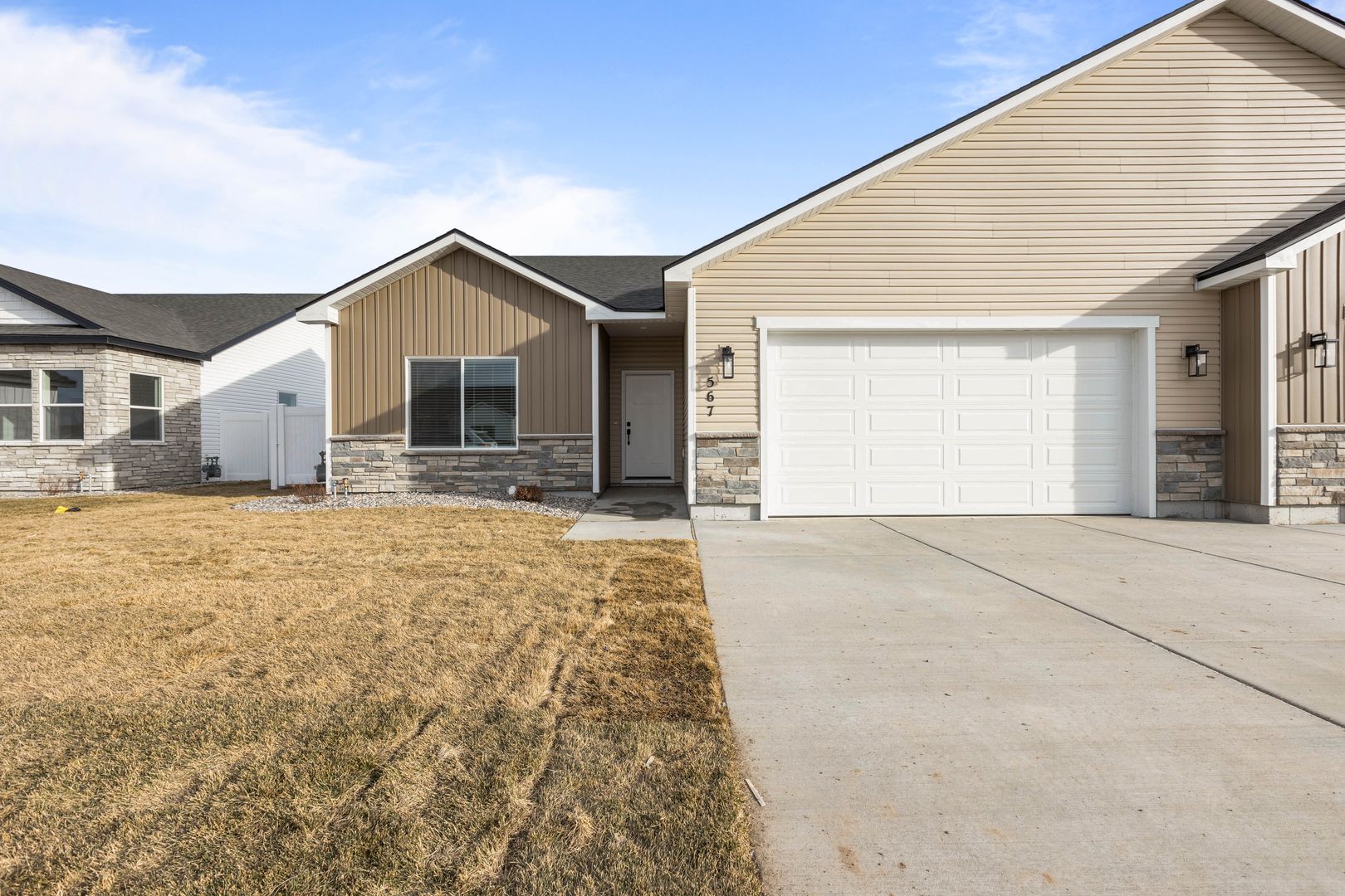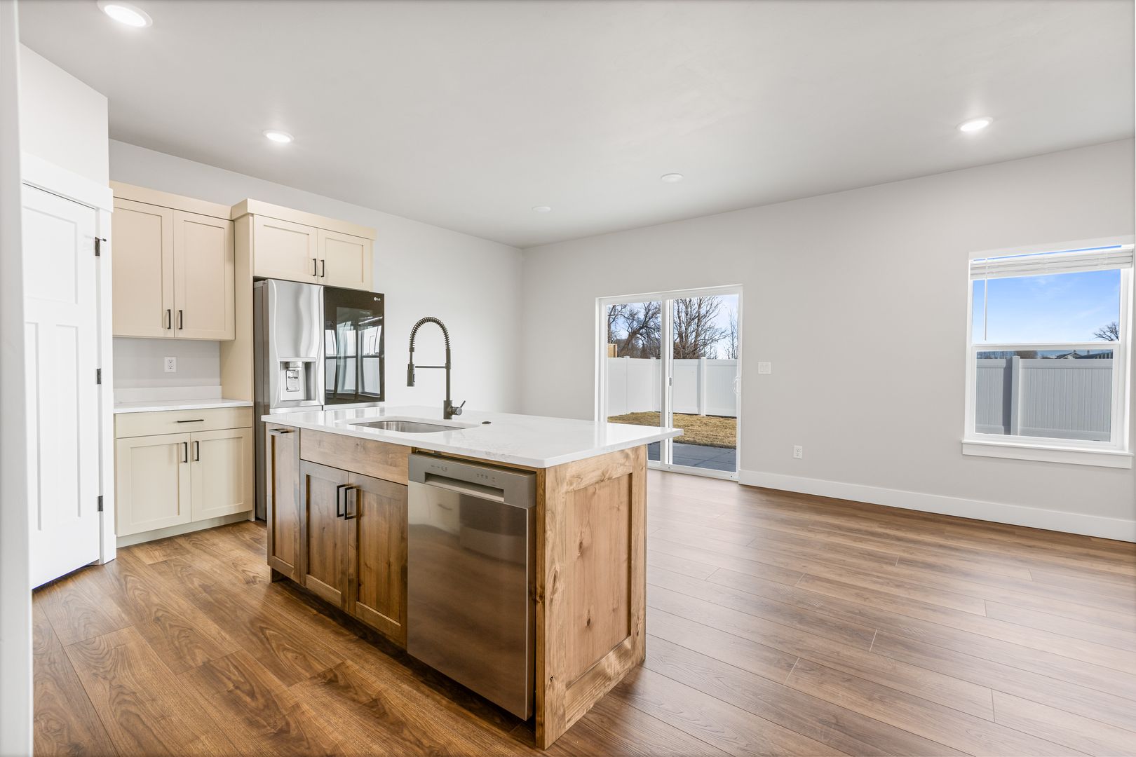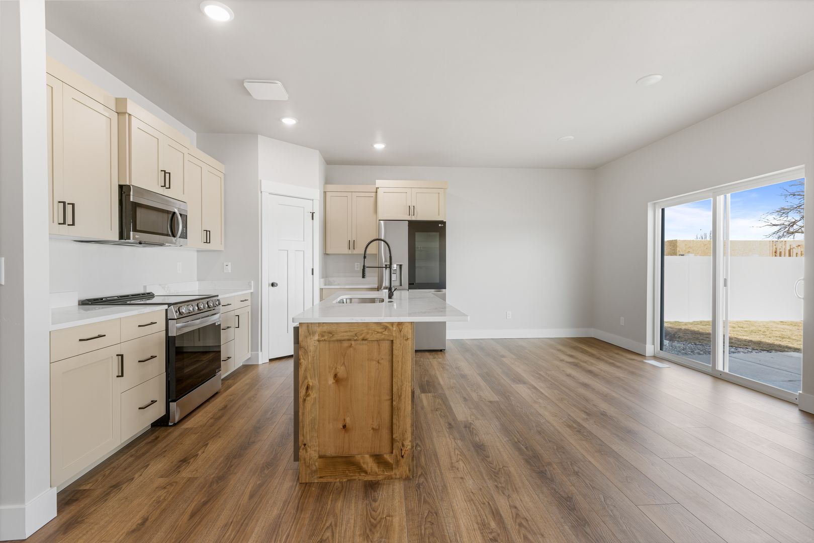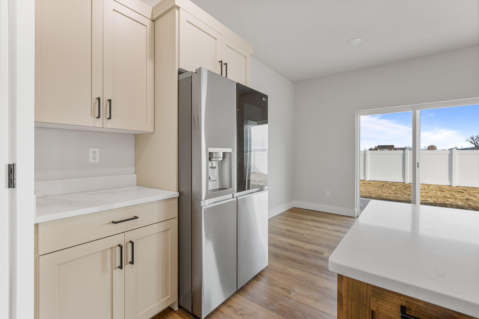 Located on a premium oversized lot, this home offers easy access to nearby recreational amenities. It features a fully fenced yard with lush grass and attractive landscaping. Built with high-quality finishes, it’s designed for low-maintenance living. Inside, you’ll find three spacious bedrooms and two full bathrooms. The open kitchen, dining, and living area includes custom cabinetry, quartz countertops, and a full appliance package. The private primary suite boasts a dual-sink vanity, tile shower, and oversized soaking tub. An extra-large two-car garage completes the home.