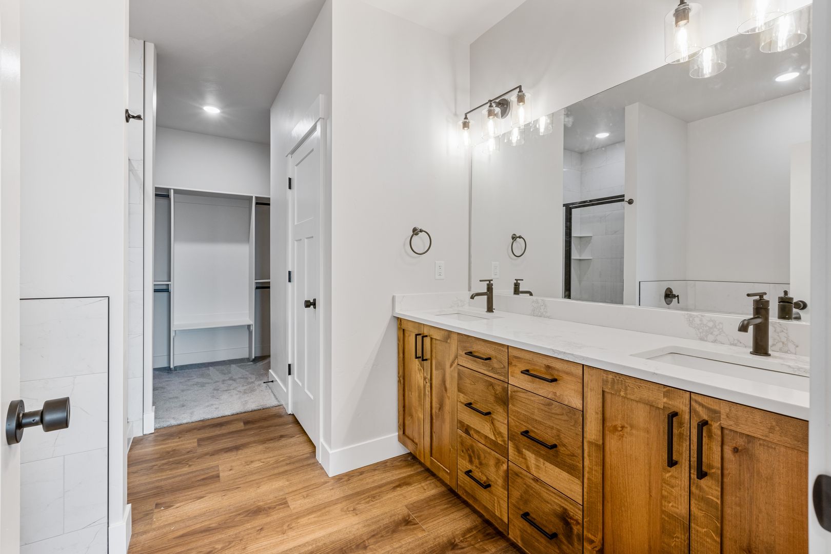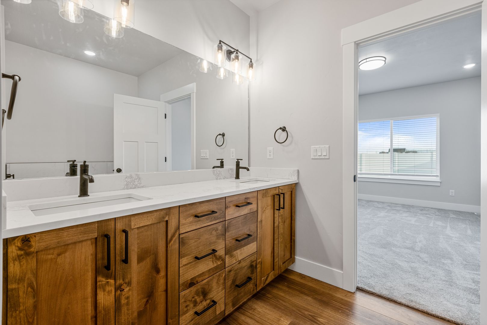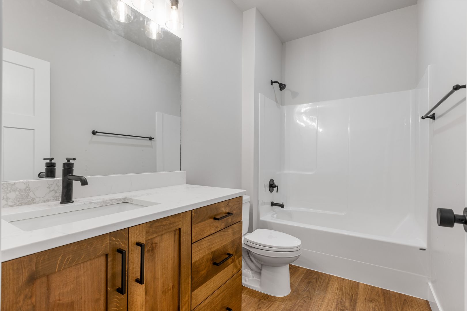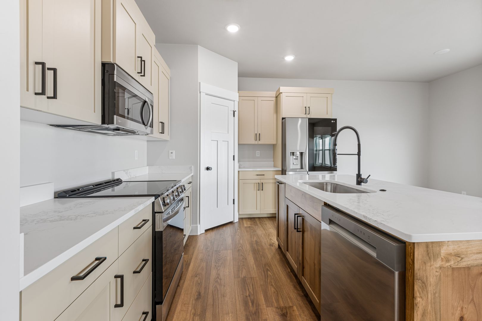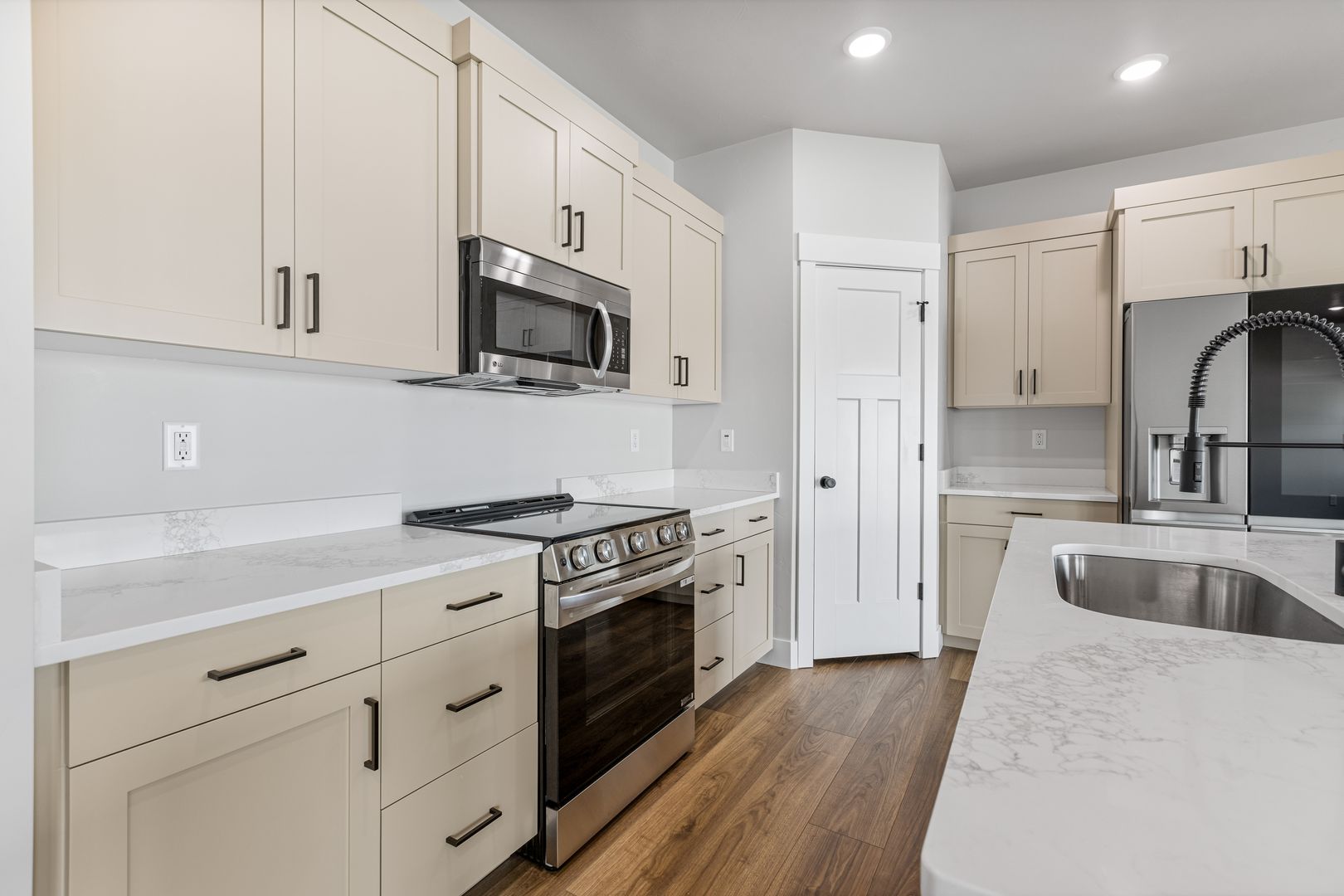 Located on a premium oversized lot, this home offers easy access to nearby recreational amenities. It features a fully fenced yard with lush grass and attractive landscaping. Built with high-quality finishes, it’s designed for low-maintenance living. Inside, you’ll find three spacious bedrooms and two full bathrooms. The open kitchen, dining, and living area includes custom cabinetry, quartz countertops, and a full appliance package. The private primary suite boasts a dual-sink vanity, tile shower, and oversized soaking tub. An extra-large two-car garage completes the home.