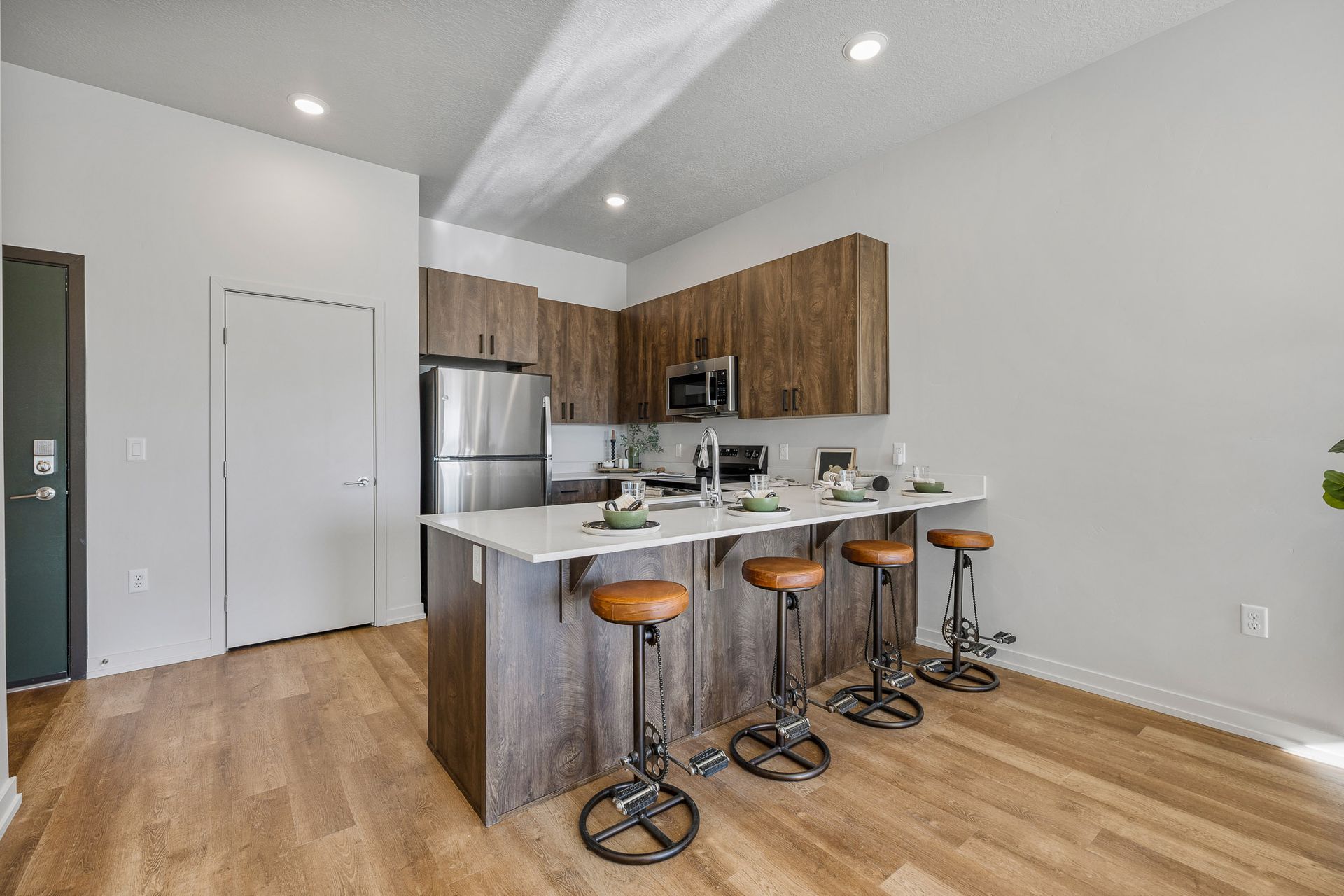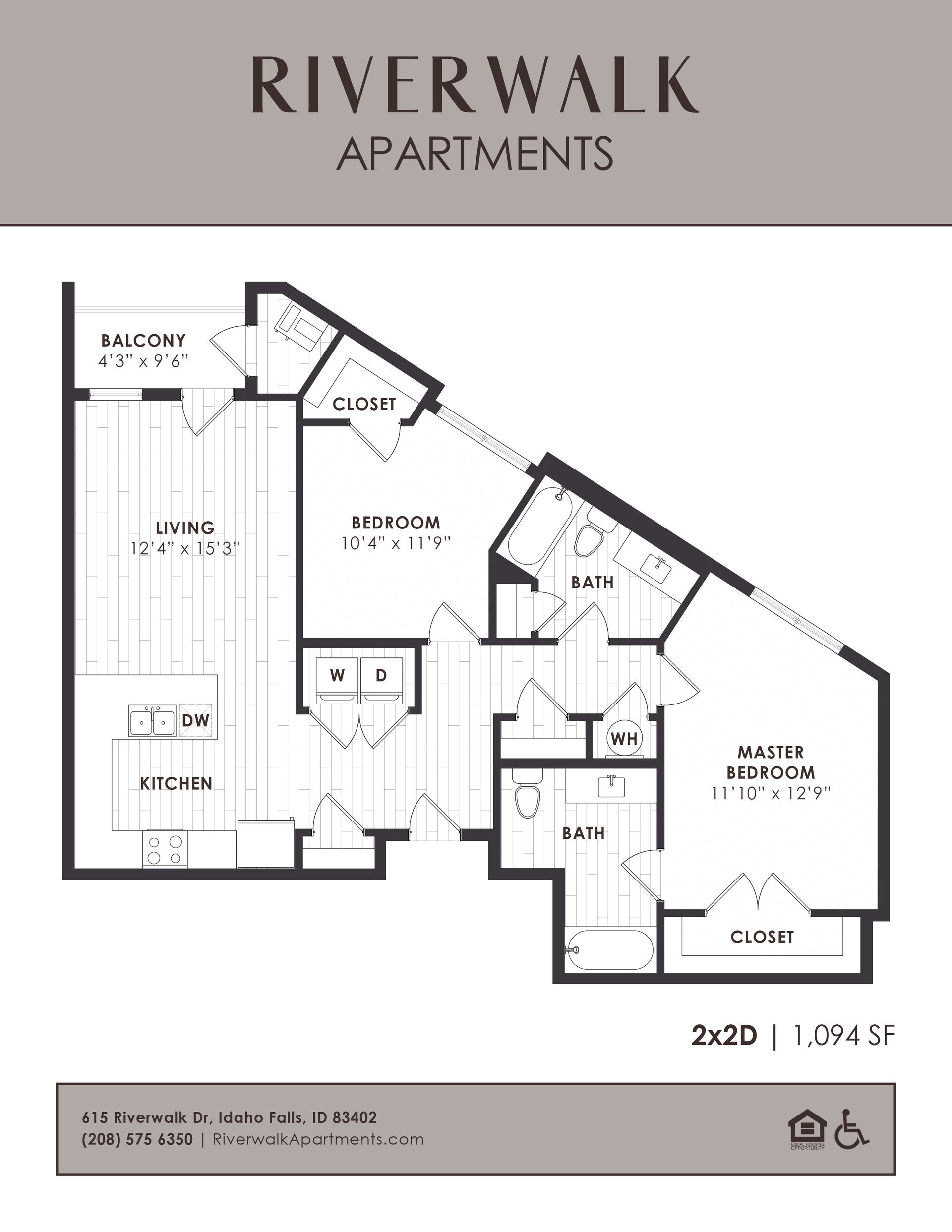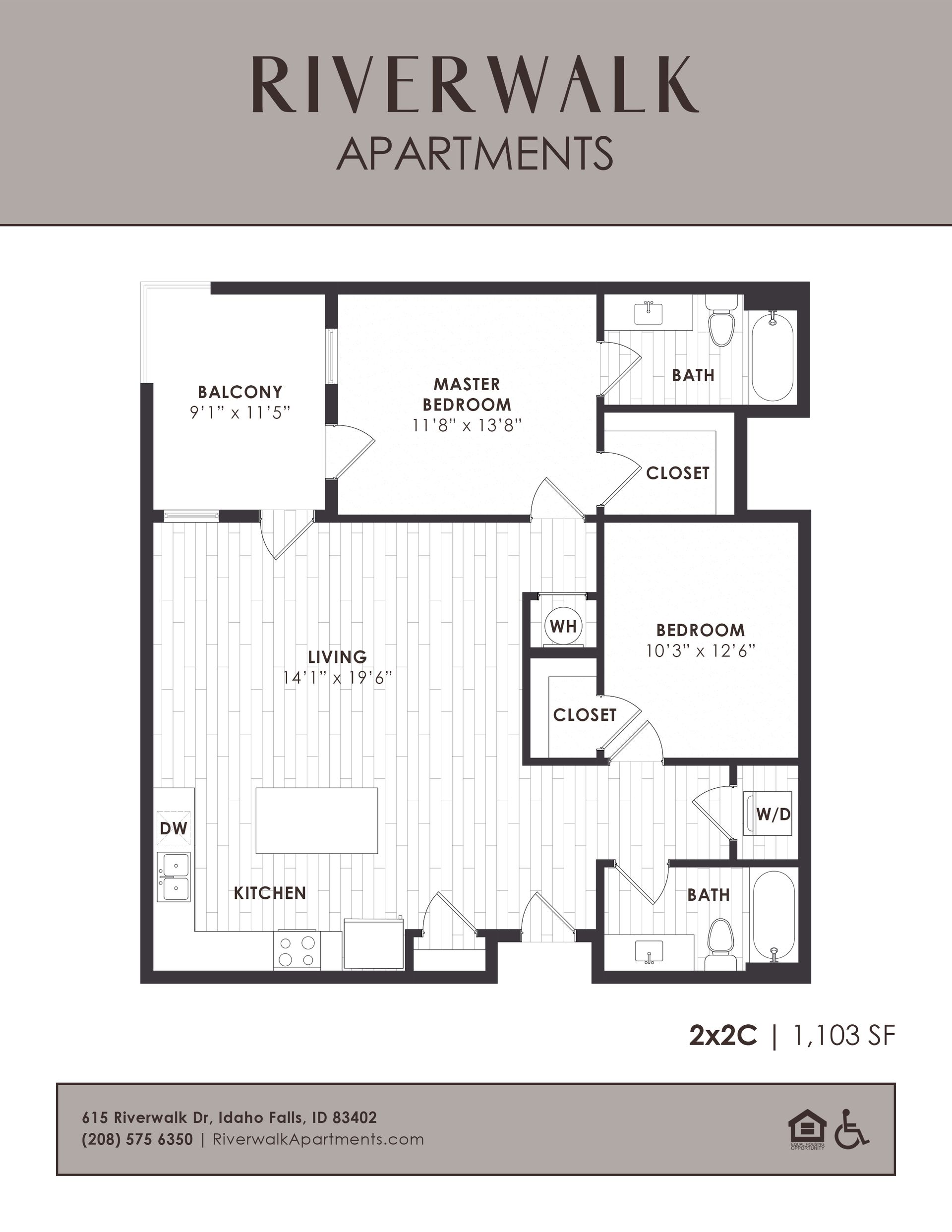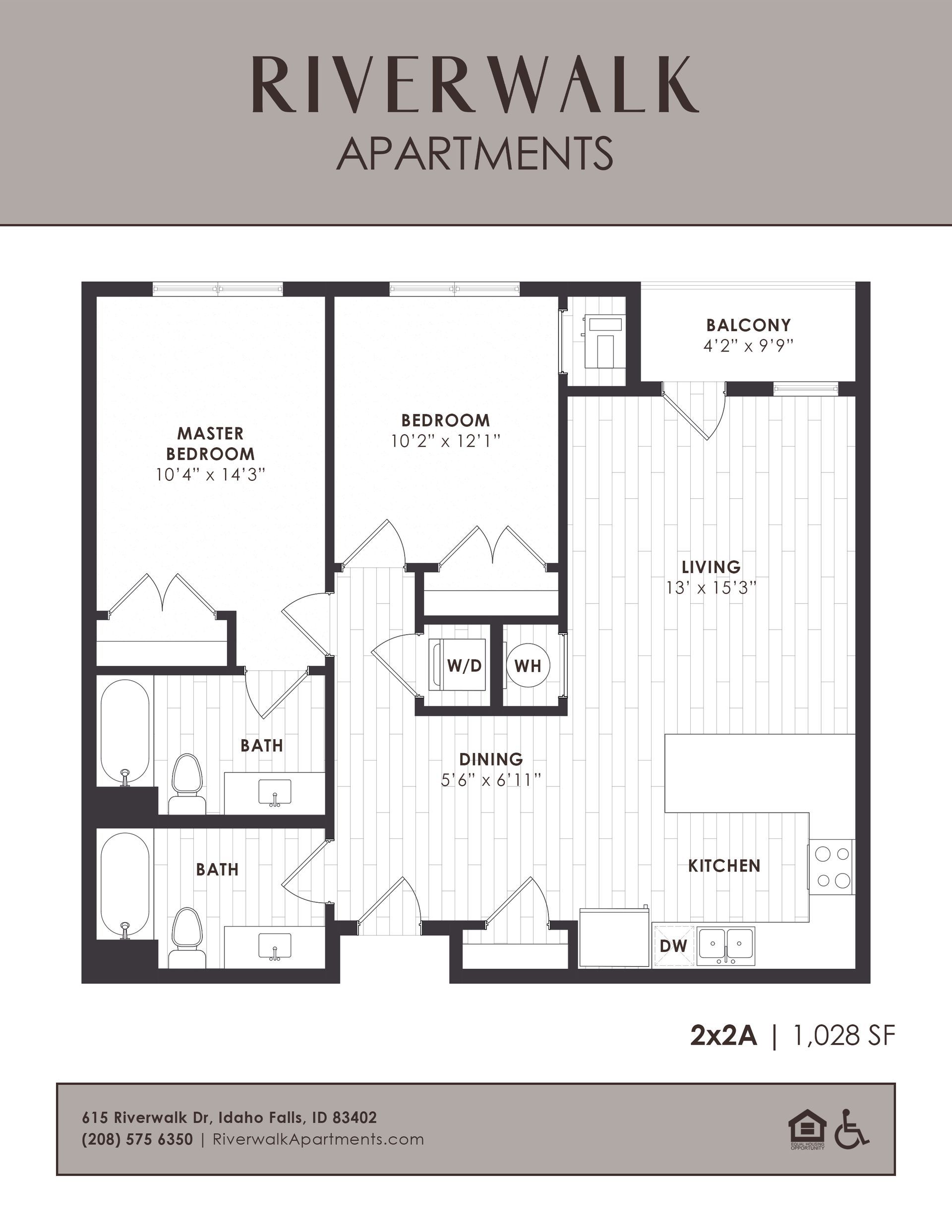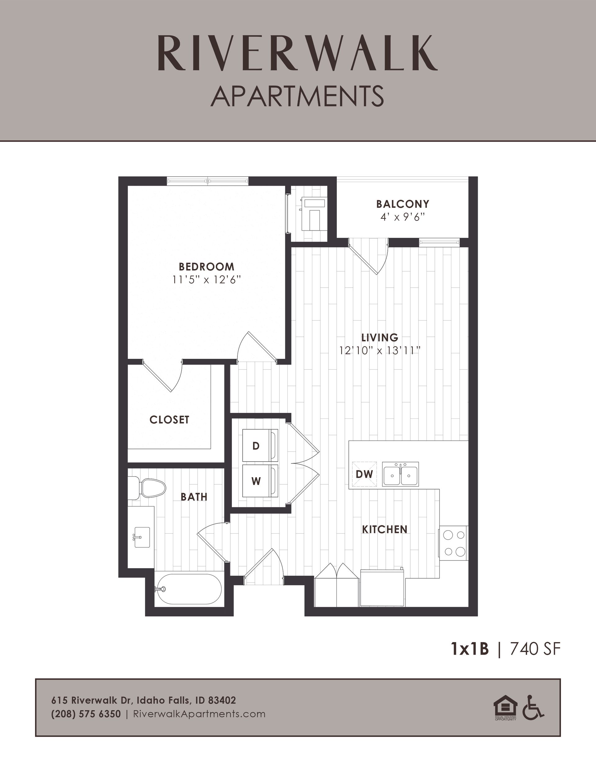 Discover a new standard of apartment living at Riverwalk Apartments – where sophisticated design, everyday comfort, and riverfront living come together. Our brand-new one- and two-bedroom homes range from 740 to 1,200 square feet, with modern features like plank-style flooring, carpeted bedrooms, and elegant tile showers. Each of our apartments in Idaho Falls is thoughtfully crafted for your lifestyle, whether you’re working remotely, hosting friends, or simply unwinding at home. And yes – we’re pet-friendly too.